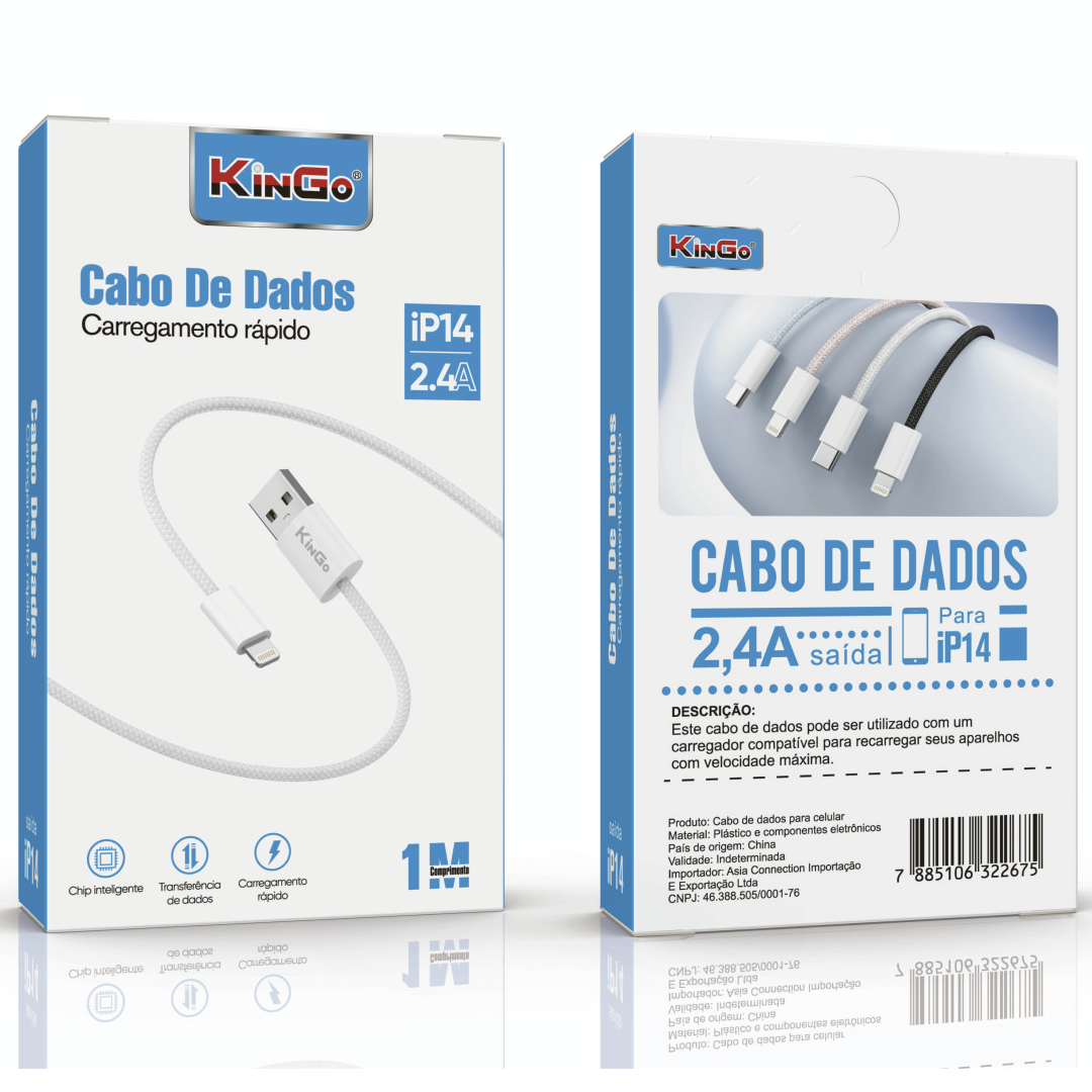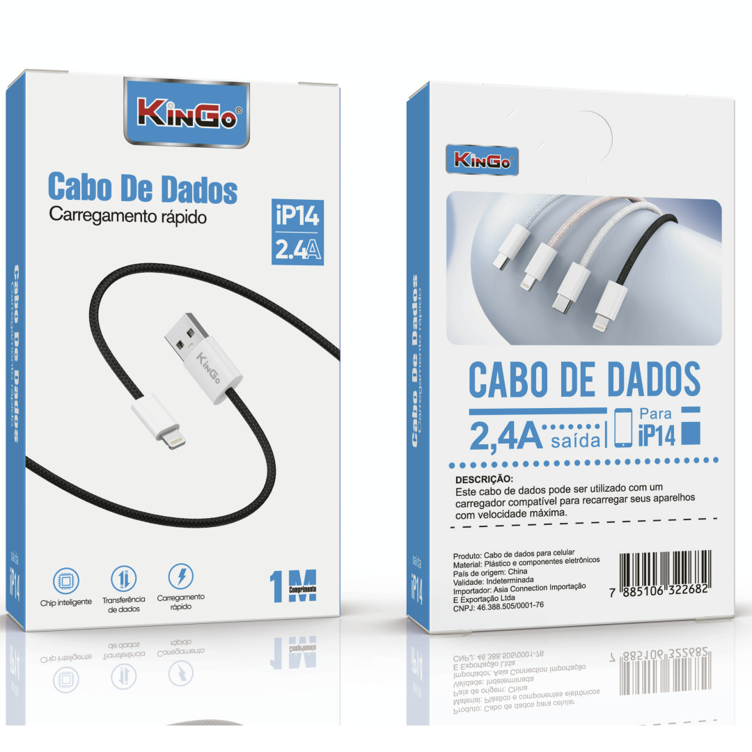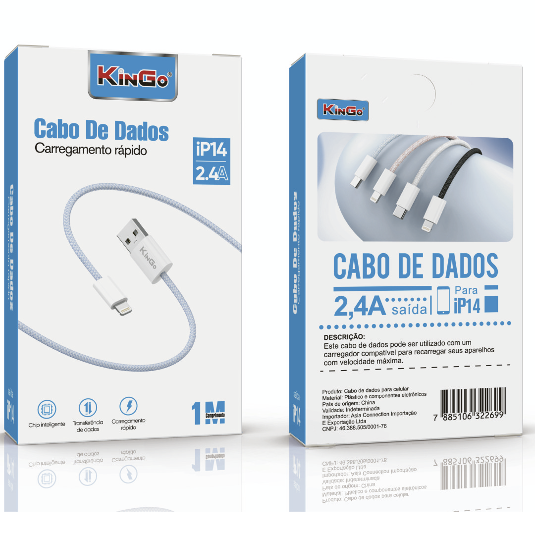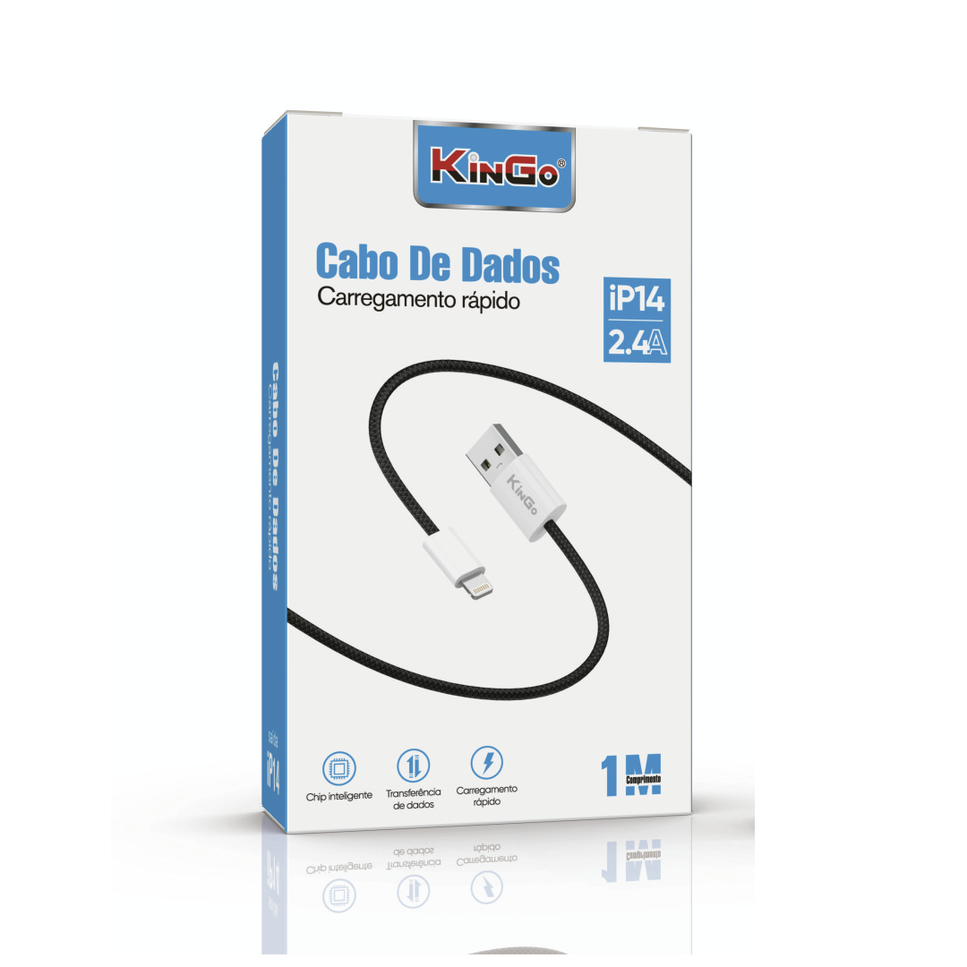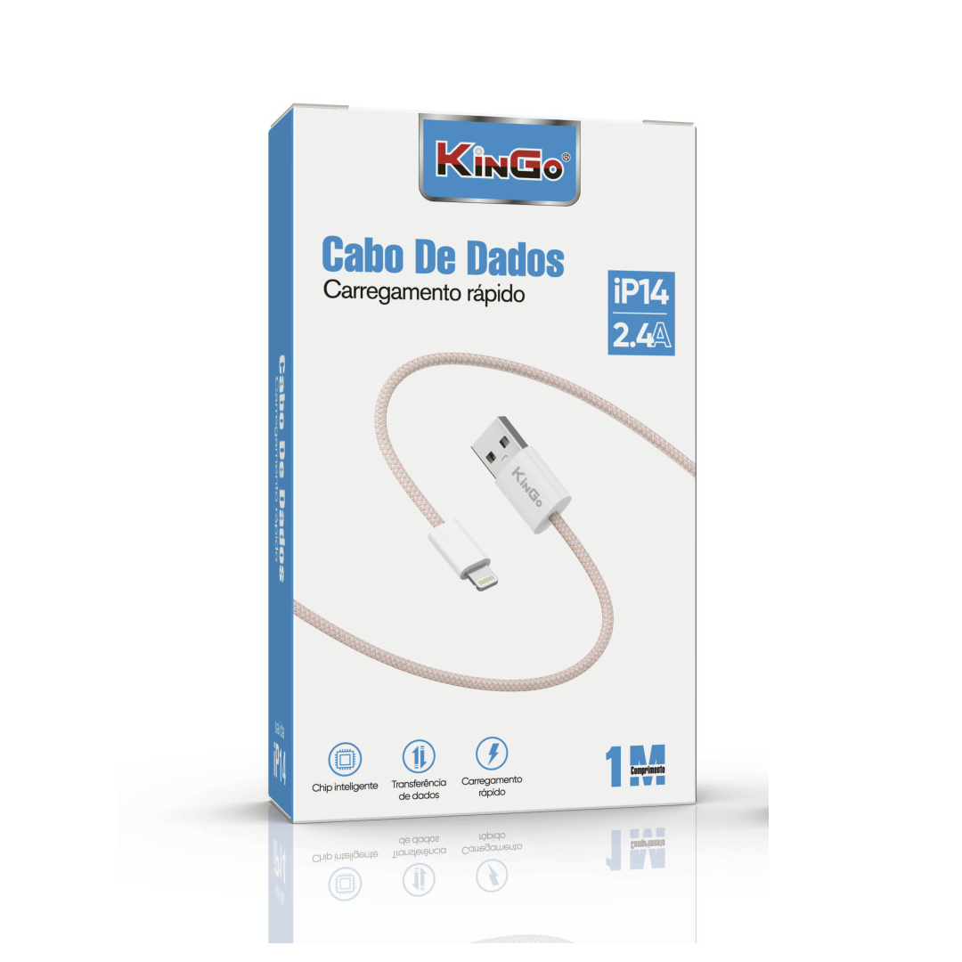 KinGo > CABO DE DADOS TRANÇADO 1 METRO IPHONE 14 2.4A