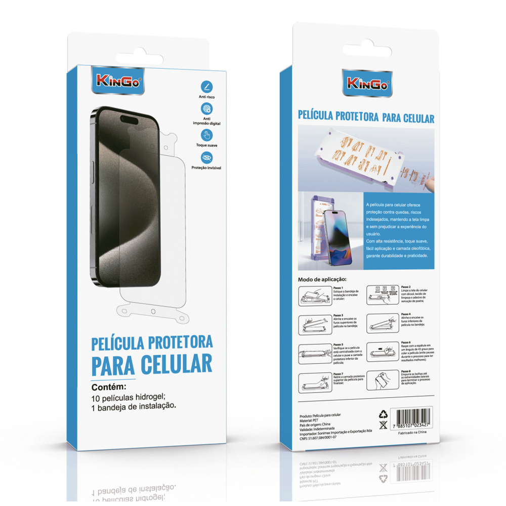 Contém na embalagem: 10 Película hidrogel; 1 bandeja de instalação.
